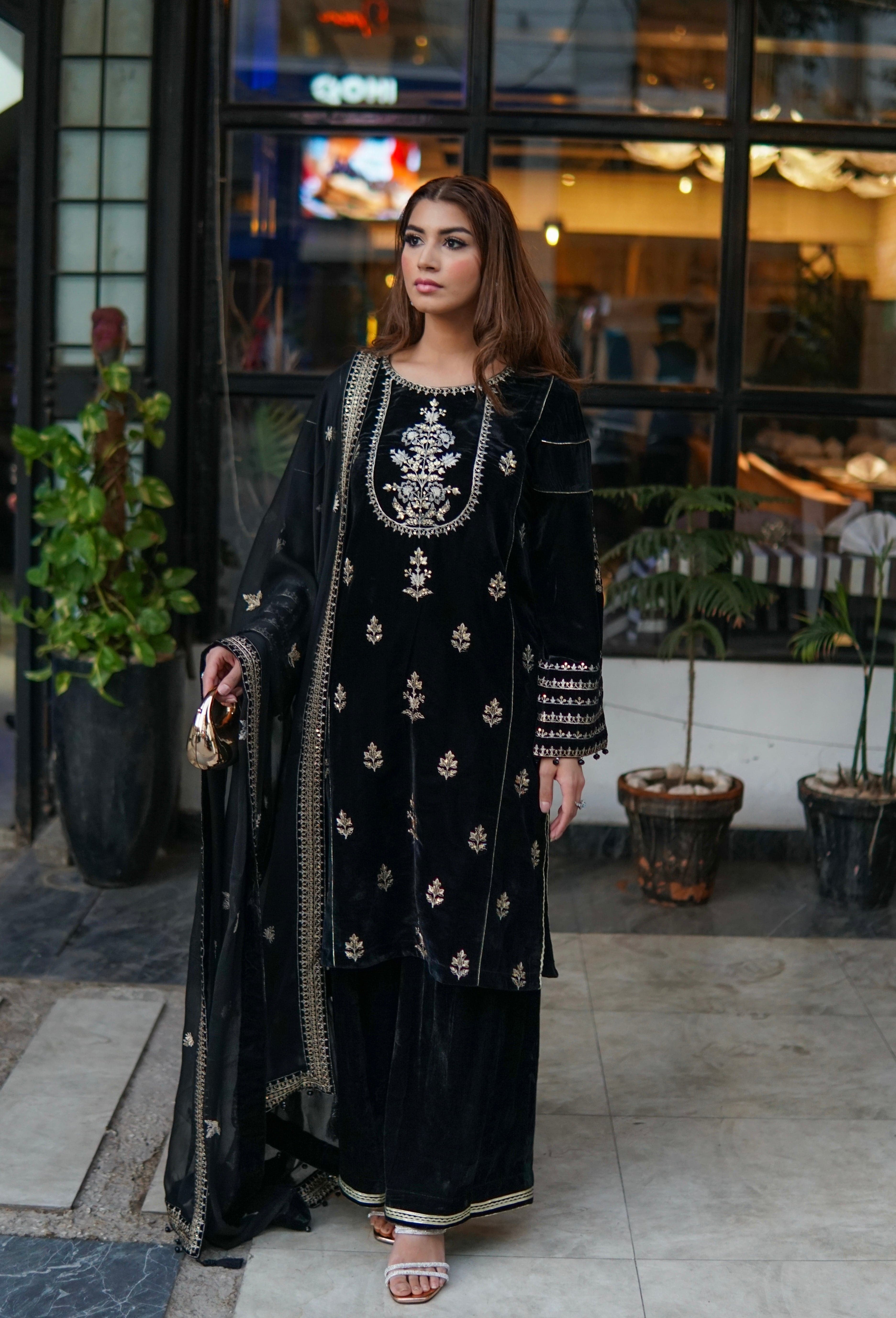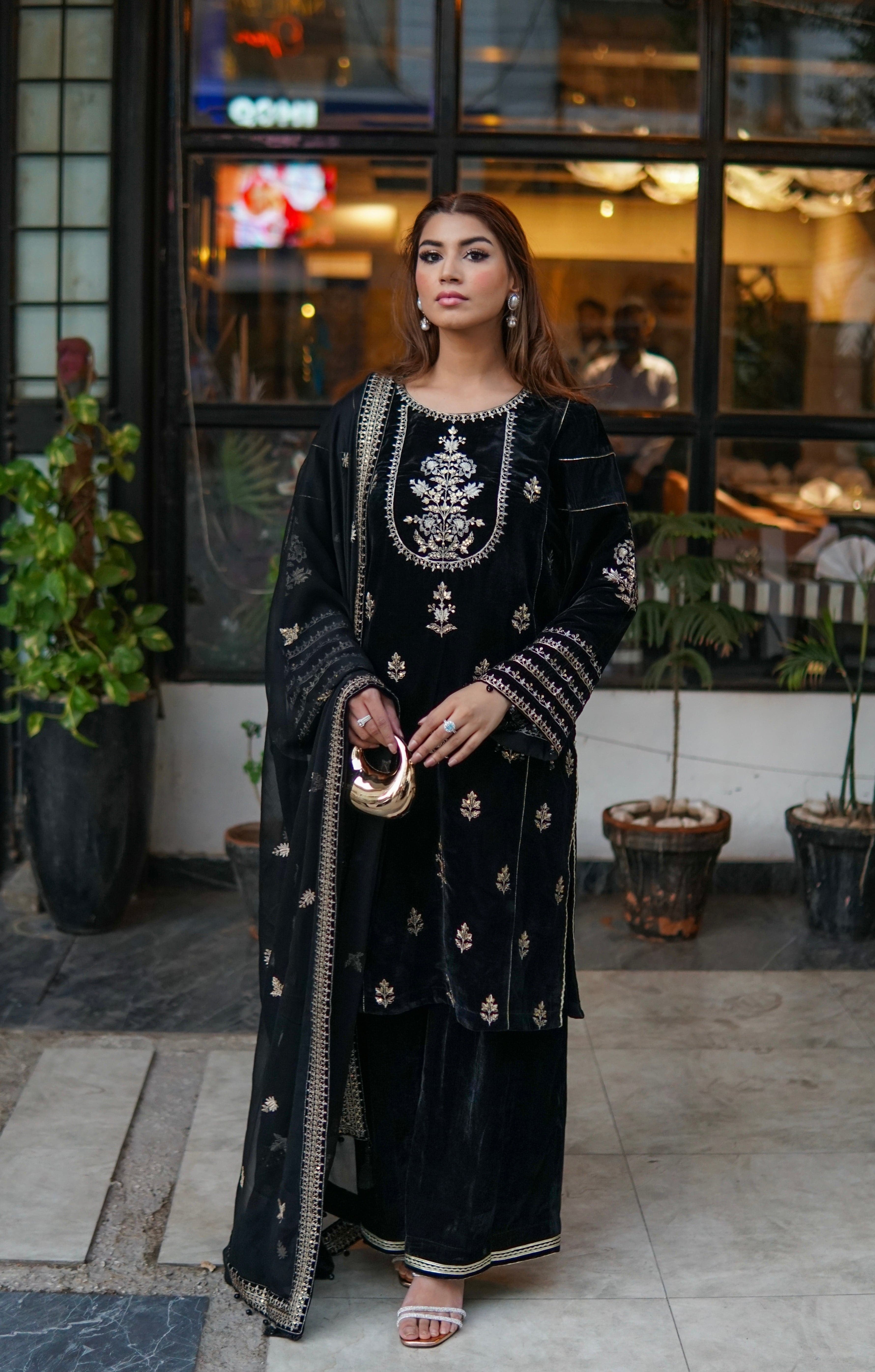 Luxury 3-Piece Micro Velvet Dress – Formal Collection