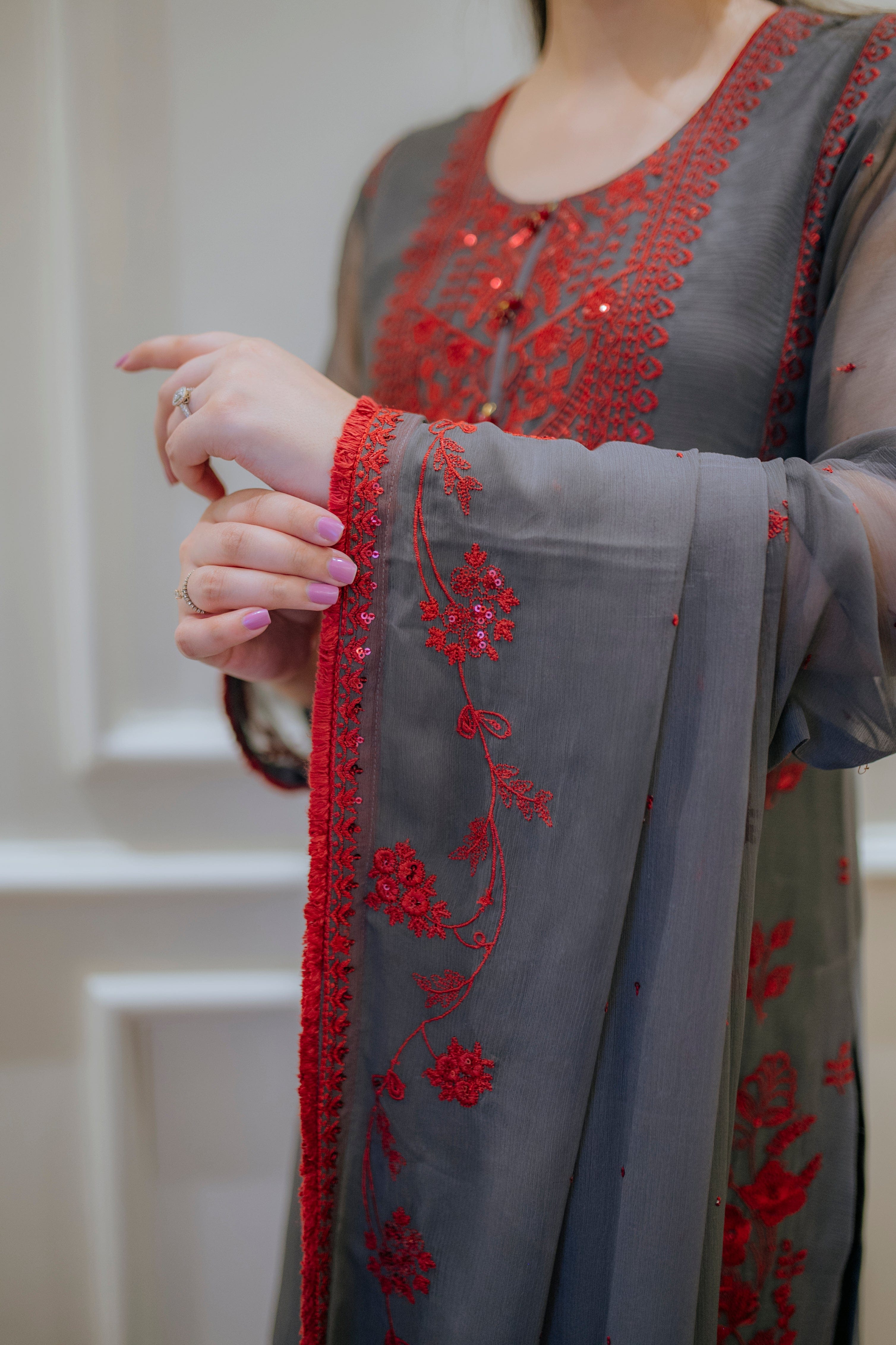 Dupatta: Embroidered chiffon dupatta