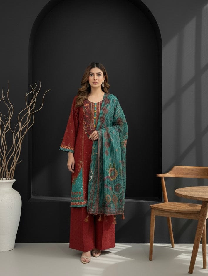 Step into winter elegance with this luxury 3-piece printed outfit from Ayesha.B.